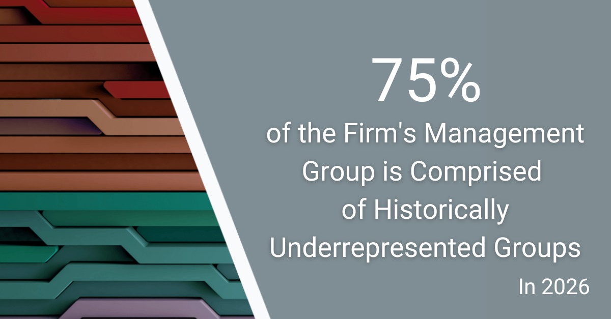 Fostering a diverse workforce is essential to providing the best possible client service. We understand the importance of building a firm that draws from a diverse set of backgrounds to reach creative solutions that drive results.